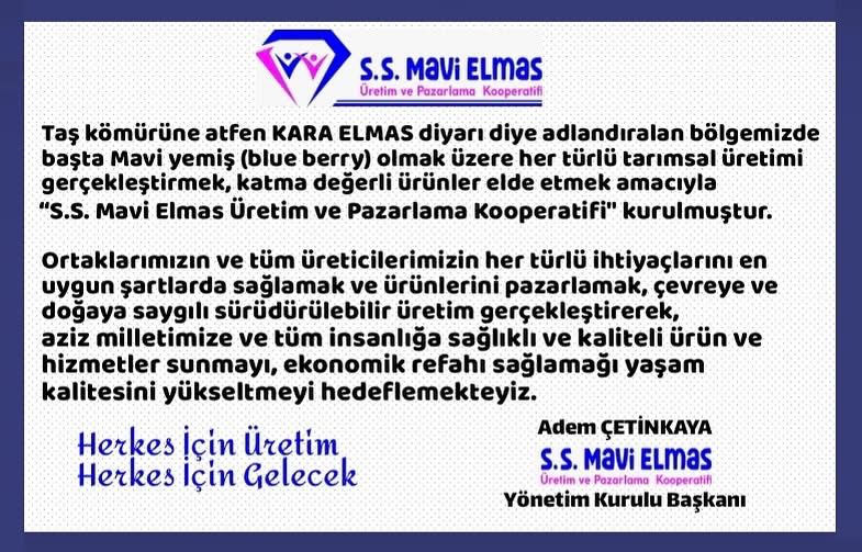 S.S. Mavi Elmas Üretim ve Pazarlama Kooperatifi olarak “Mavi Yemiş” yetiştiriciliğine